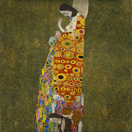 Gustav Klimt (1862-1918) was an Austrian symbolist painter best known for his paintings of the female body. The son of an engraver, Gustav attended the Vienna School of Arts and Crafts studying architectural painting and soon after started his career painting interior murals and ceilings. He came a founding member and president of the Vienna Secession, a group credited for bringing French Impressionists to the Viennese public. Klimt’s paintings contained radical themes and were considering disturbing. He transformed traditional allegory and symbolism into a new sexual language. During this time he meet Emilie Louise Floge, who appeared in several of his works. After the Vienna secession years, Gustav’s works are categorized as his Golden phase, where he used gold leaf as a predominant design element. Our collection of Gustav Klimt patterns includes many of his most recognized paintings including The Kiss, Portrait of Adele Bloch-Bauer I, Fulfillment, Expectation, Portrait of Hermine Gallia, The Three Ages of Woman, Danae, Girlfriends, Hope I, Hope II, Houses in Unterach on the Attersee, Water Serpents I, and Adam and Eve.