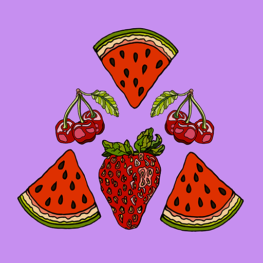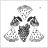Let’s have a picnic with geometrically designed hotdogs, limes, lemons, corn, chicken, hamburgers, watermelon, strawberries, and other fruits!