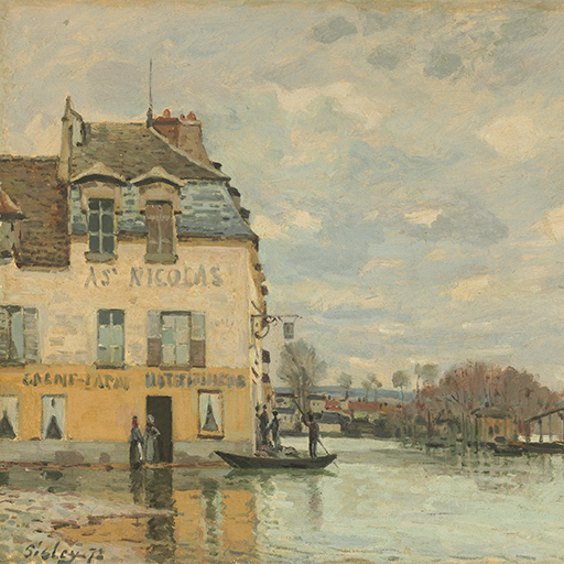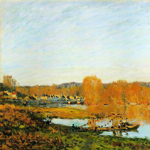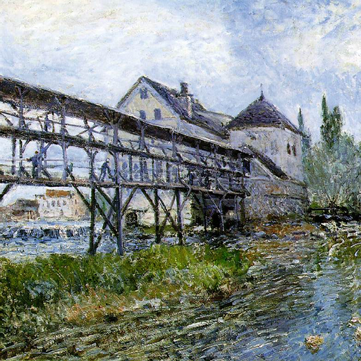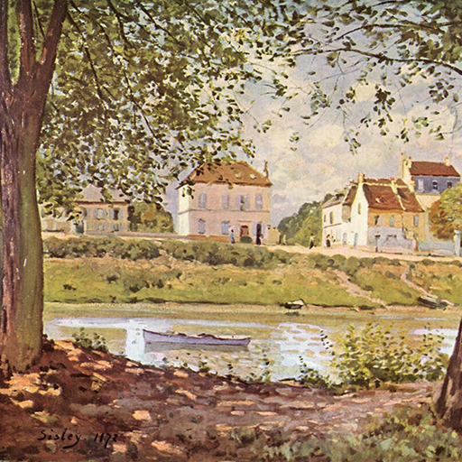 Alfred Sisley (1839-1899) was a French Impressionist of English origin whose work is considered the most typical for Impressionist painters, never varying much from his landscape scenes of the French countryside. His paintings captue scenery from several cities around Paris including Argenteuil, Marly, Moret, Louveciennes, and Bougival. Our collection contains hist most recognized works including Street in Moret, Sand Heaps, Flood at Port-Marly, The Seine at Bougival in Winter, Bridge at Villeneuv-la-Garenne, Still Life with Heron, Chemin de la Machine Louveciennes, The Lesson, The Church at Moret, Snow at Louveciennes, Moret-sur-Loing, and The Bridge at Argenteuil.